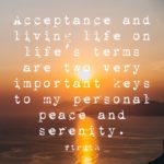 Acceptance and living life on life’s terms are two essential keys to my peace and serenity.