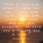 Jeremiah 29:11, “For I know the plans I have for you,” says the Lord, “They are plans for good and not for disaster, to give you a future and a hope.” (NLT)