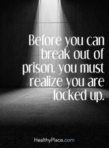 It took a group of people who loved me along with professional counselors to convince me the prison cell I had created was locked and I was inside without a clue on what to do. In some ways I knew I was a prisoner, but I always THOUGHT I could find freedom my own way.