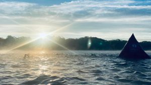 - Close to a thousand people of all shapes, sizes, ethnicity, race, nationality, gender, and age huddled on the beach in the frigid morning air, anticipating the plunge into Prairie Creek Reservoir to begin the race…all of whom were encouraging one another that jumping into the lake at 7:30 am on a 45 degree, chilly fall morning was a good thing to do…especially if you had any desire to complete the entire race. ๐